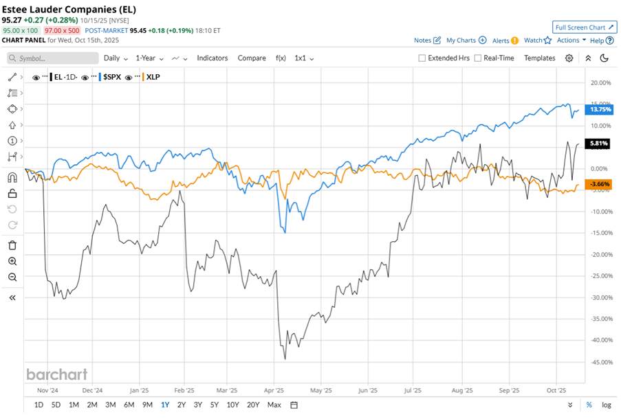 EL stock grew 4.2% over the past 52 weeks, significantly underperforming the S&P 500 Index’s ($SPX) 14.7% surge, while outperforming the Consumer Staples Select Sector SPDR Fund’s (XLP) 4% decline over the same time frame.