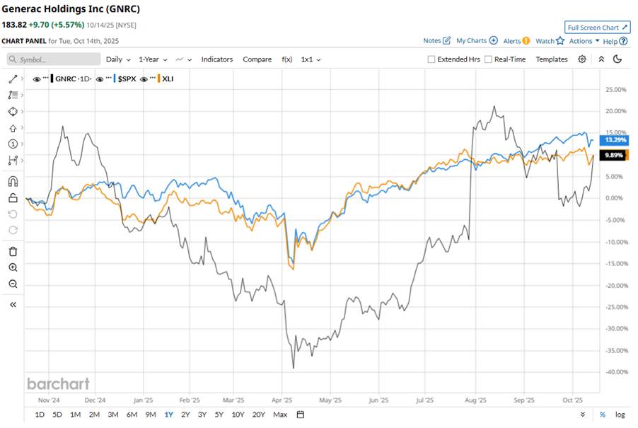 Over the past 52 weeks, GNRC stock has increased 5.8%, underperforming the broader S&P 500 Index’s ($SPX) 13.4% return and the Industrial Select Sector SPDR Fund’s (XLI) 10.1% gain over the same period.