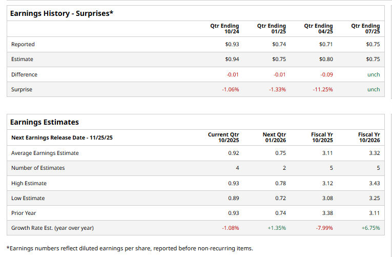 Valued at a market cap of $25.9 billion, HP Inc. (HPQ) provides personal computing, printing, 3D printing, hybrid work, gaming, and other related technologies. The Palo Alto, California-based company serves individual consumers, small- and medium-sized businesses, and large enterprises. It is expected to announce its fiscal Q4 earnings for 2025 soon.