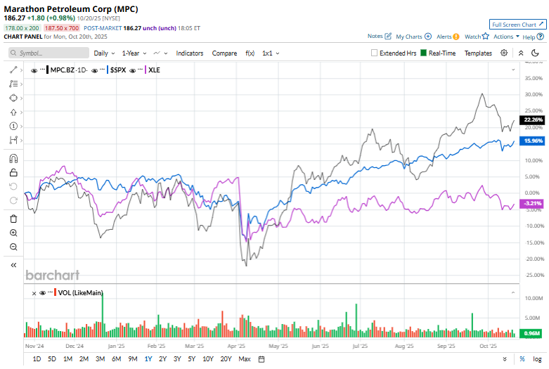 MPC has gained 17.7% over the past 52 weeks, outperforming the S&P 500 Index's ($SPX) 14.8% return and the Energy Select Sector SPDR Fund’s (XLE) 3.8% fall over the same period.