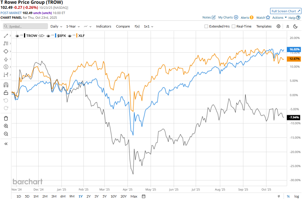 TROW stock prices have dropped 6.4% over the past 52 weeks, notably outperforming the Financial Select Sector SPDR Fund’s (XLF) 11.5% gains and the S&P 500 Index’s ($SPX) 16.2% returns during the same time frame.