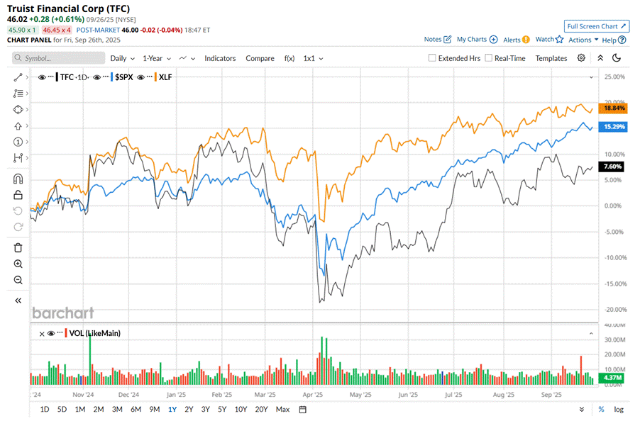 Shares of TFC have gained 8.7% over the past 52 weeks, lagging behind both the S&P 500 Index's ($SPX) 15.6% rise and the Financial Select Sector SPDR Fund’s (XLF) 19.6% uptick over the same time frame.