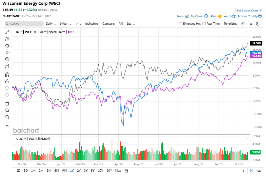 WEC stock has outperformed the S&P 500 Index’s ($SPX) 13.4% gains over the past 52 weeks, with shares up 21% during this period. Similarly, it outperformed the Utilities Select Sector SPDR Fund’s (XLU)14.3% gains over the same time frame.