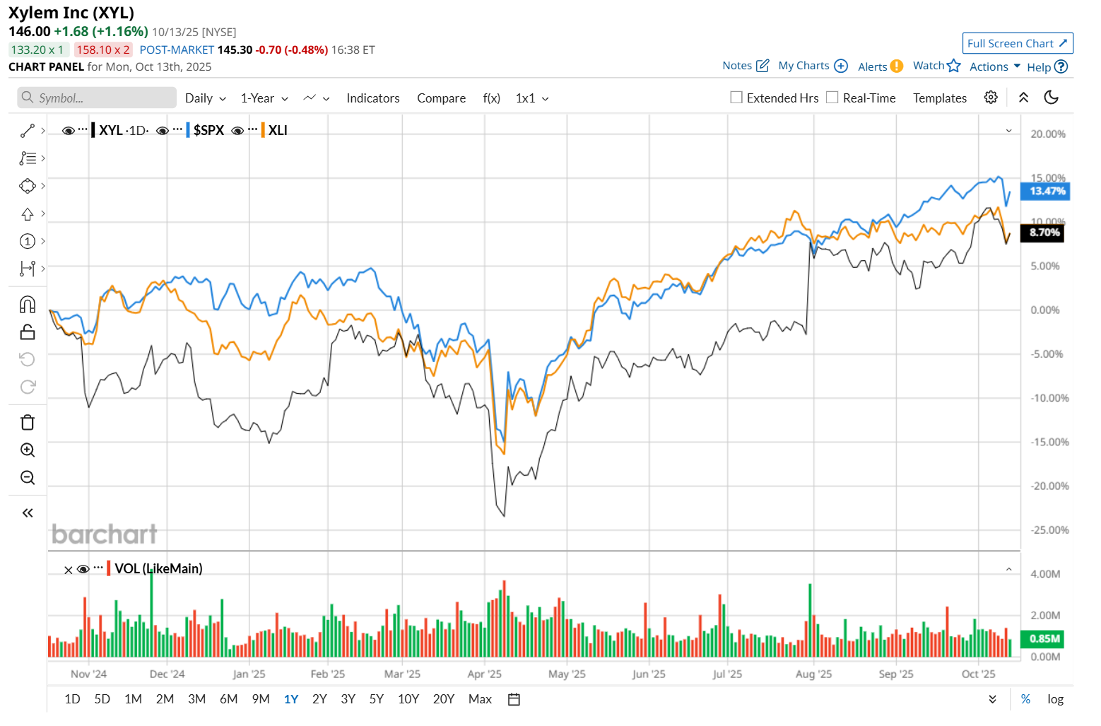 Xylem has gained 6.7% over the past 52 weeks, lagging behind both the S&P 500 Index's ($SPX) 14.4% return and the Industrial Select Sector SPDR Fund’s (XLI) 9.4% uptick over the same time frame.