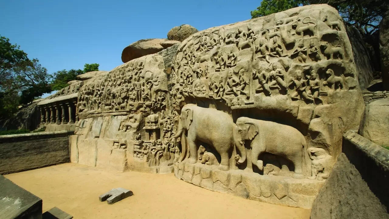Just a short walk away is the Descent of the Ganges, another captivating rock relief narrating the story of River Ganges’ descent from heaven, guided by Bhagiratha’s devotion. The dynamic compositions in these carvings breathe life into the ancient legends.
