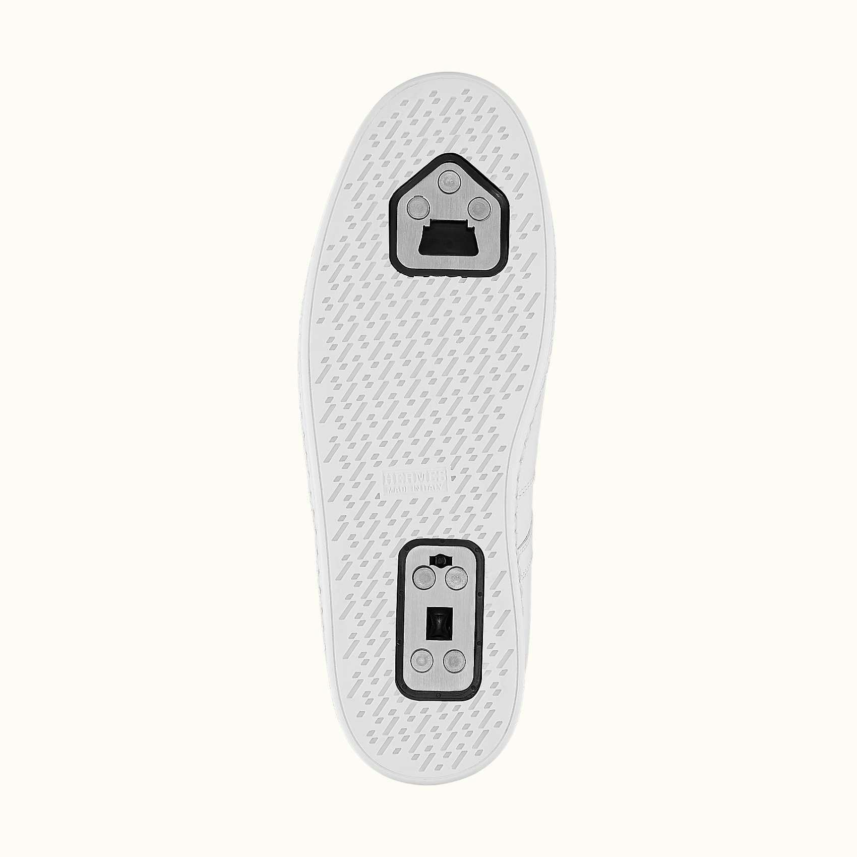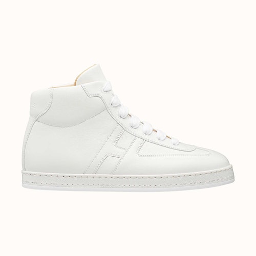 The frills come primarily from its price tag and flexibility, as the shoe itself is an all-white hightop made of calfskin leather. A subtle "H" can be seen in the upper, the rest of which features only tight stitching for its simple components.