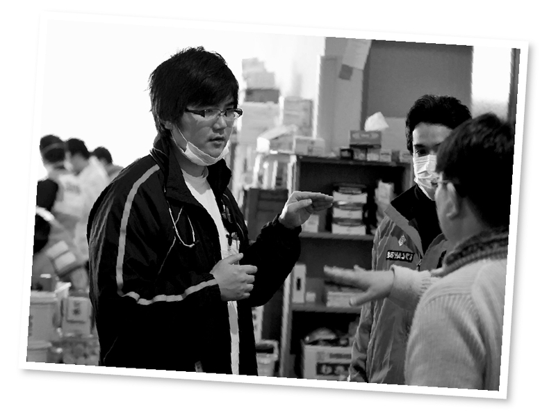Together with patients and other people, Kanno managed to hang on in an otherwise empty meeting room, waiting to be rescued. As he finished getting everyone into Self-Defense Forces helicopters, and then boarded one himself, the last person to be rescued, tears gushed from his eyes.