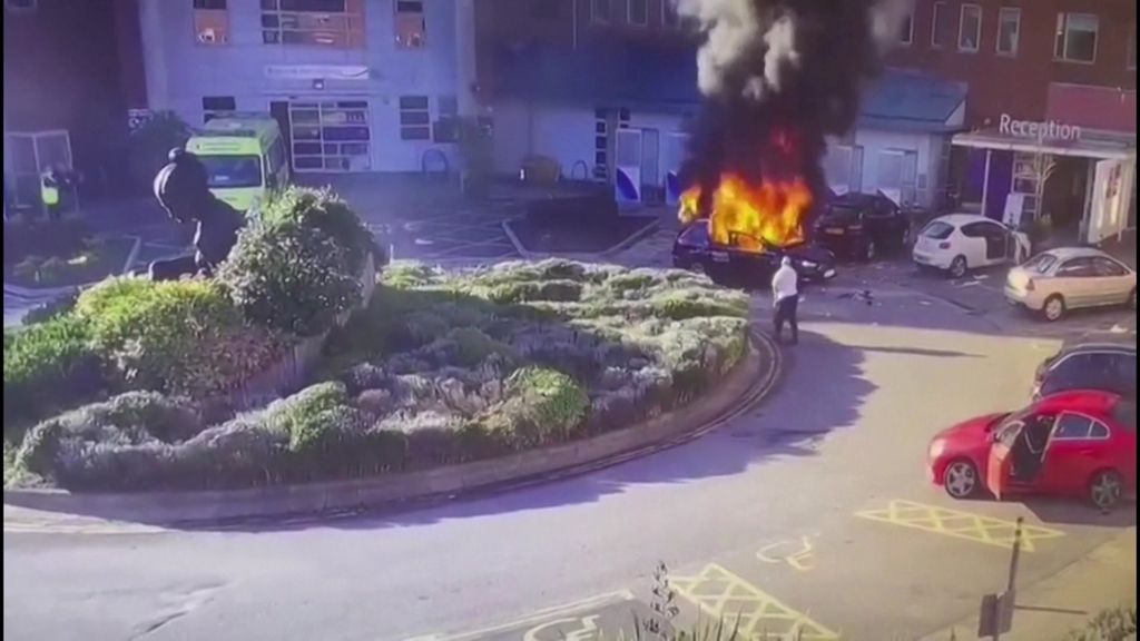 CCTV from the hospital shows the station wagon approaching the hospital car park drop-off section at speed before the explosion occurs.