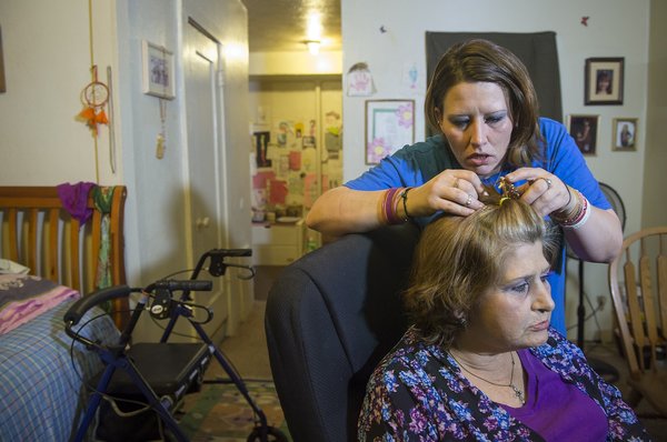 Hair and make-up done, they gather their purses and cigarettes. Nancy grabs her walker. They'll walk nearly a half mile and take buses to get to Truman.