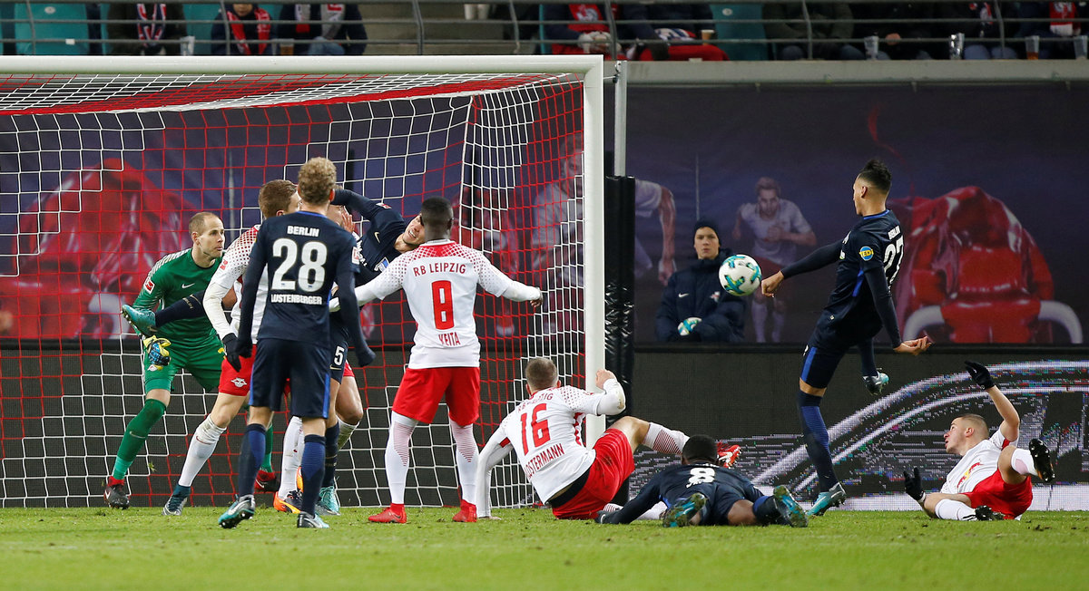 Soccer Football - Bundesliga - RB Leipzig vs Hertha Berlin - Red Bull Arena, Leipzig, Germany - December 17, 2017 Hertha Berlin’s Davie Selke scores their third goal REUTERS/Axel Schmidt Soccer Football - Bundesliga - RB Leipzig vs Hertha Berlin - Red Bull Arena, Leipzig, Germany - December 17, 2017 RB Leipzig and Hertha Berlin players remonstrate with referee Frank Willenborg REUTERS/Axel Schmidt Soccer Football - Bundesliga - RB Leipzig vs Hertha Berlin - Red Bull Arena, Leipzig, Germany - December 17, 2017 RB Leipzig's Bruma in action with Hertha Berlin’s Alexander Esswein REUTERS/Axel Schmidt Soccer Football - Bundesliga - RB Leipzig vs Hertha Berlin - Red Bull Arena, Leipzig, Germany - December 17, 2017 RB Leipzig coach Ralph Hasenhuettl REUTERS/Axel Schmidt