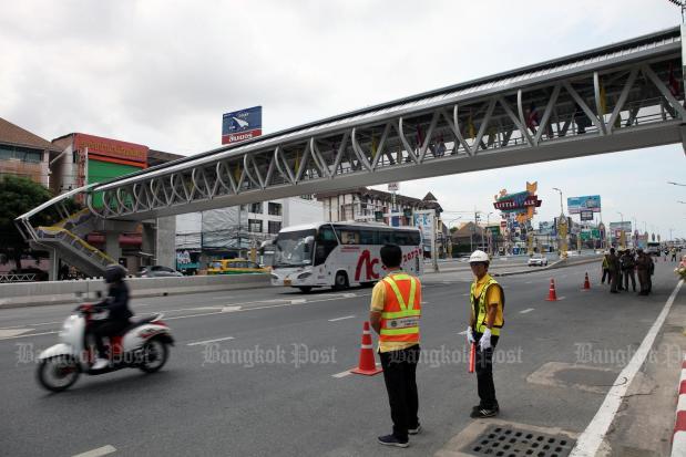 The 14.5-million-baht bridge, located over the Sukhumvit-Pattaya Klang intersection in Chon Buri, officially opened on Thursday, with Transport Minister Arkhom Termpittayapaisith presiding over the ceremony.