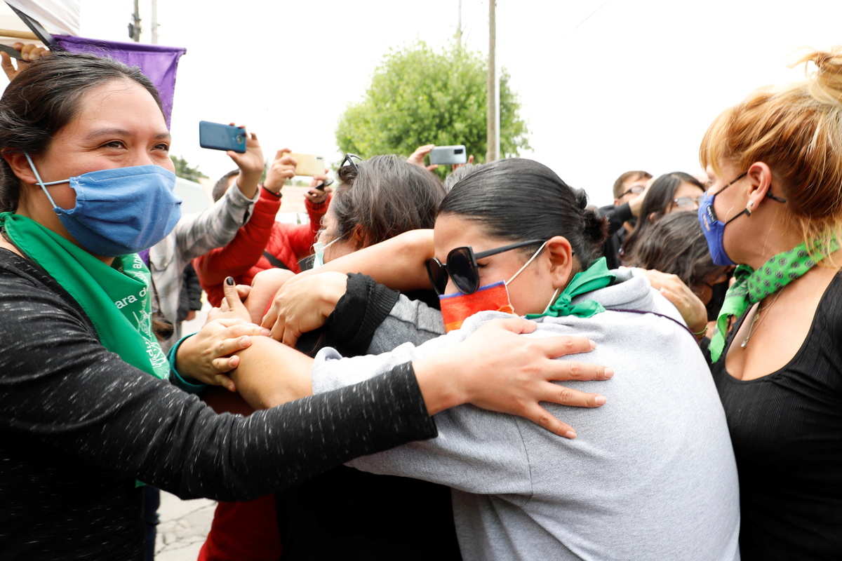 Several dozen women clad in green bandannas symbolizing the abortion rights movement burst into cheers and applause outside the session as the vote count was announced, local media showed.