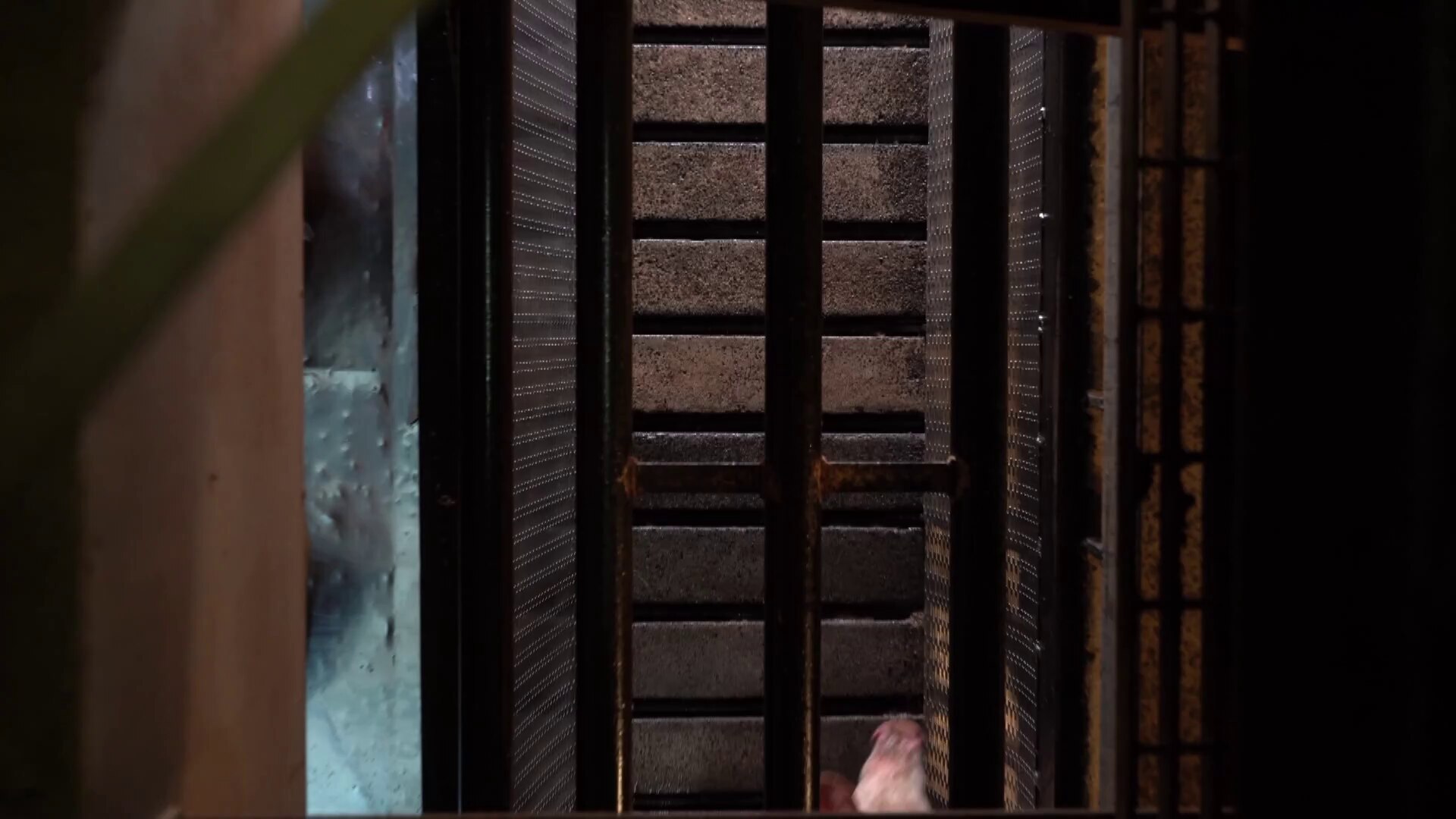 After climbing through the machinery, he reached the ceiling area of a gas chamber where he would spend around nine and a half hours, as hundreds of pigs were slaughtered just metres below him.