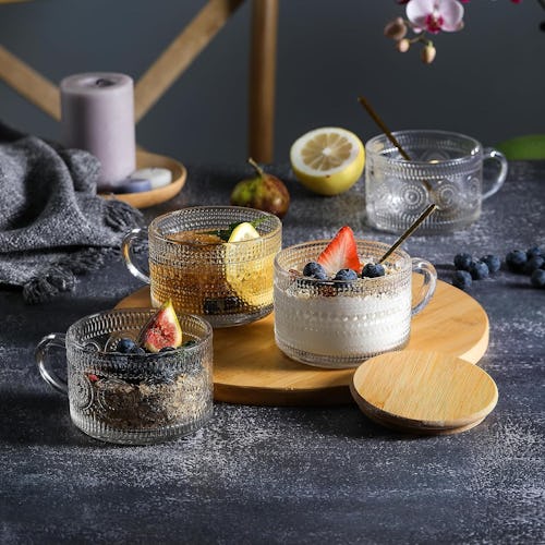 Sip in style with this pack of vintage-inspired glass mugs. Each cup comes with a bamboo lid and a rose gold spoon so you can use it to enjoy overnight oats, coffee, cereal, and anything in between. Just skip the microwave and avoid pouring boiling water straight in, and they’ll stay gorgeous for ages.