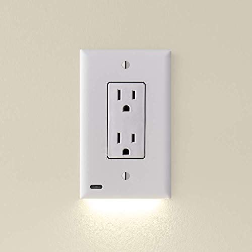 Single - SnapPower GuideLight 2 [For Décor Outlets] - Replaces Plug-In Night Light - Electrical Receptacle Wall Plate With LED Night Lights - Auto On/Off Sensor - (Decor, White)