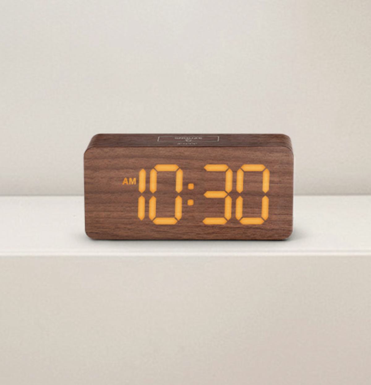 There’s no denying that this alarm clock would look so good sitting on your nightstand. The faux wood finish makes it stand out from the crowd, with the large, easy-to-read face makes it easy to see from across the room. And unlike some clocks, this one can be dimmed so that the face isn’t annoyingly bright when you’re trying to fall asleep.
