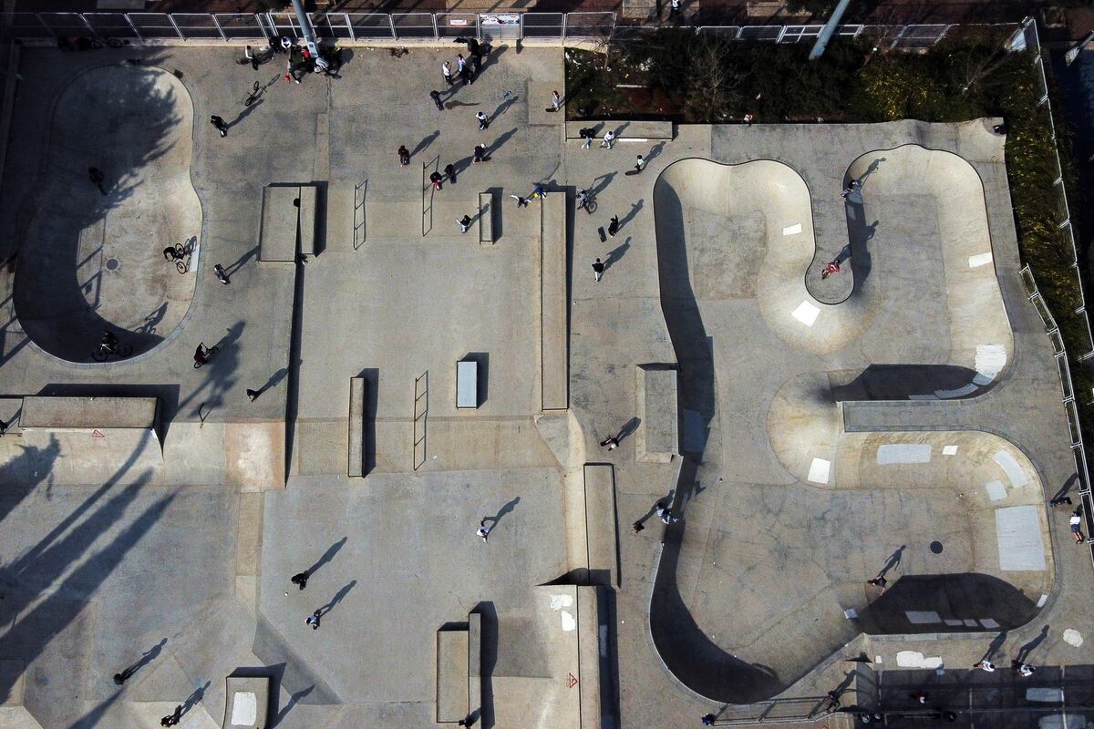An aerial view shows people at a skate park as Israel partially lifts its third national lockdown to fight the coronavirus disease (COVID-19) crisis, in Jerusalem February 7, 2021. Picture taken February 7, 2021. Picture taken with a drone. REUTERS/Ammar Awad