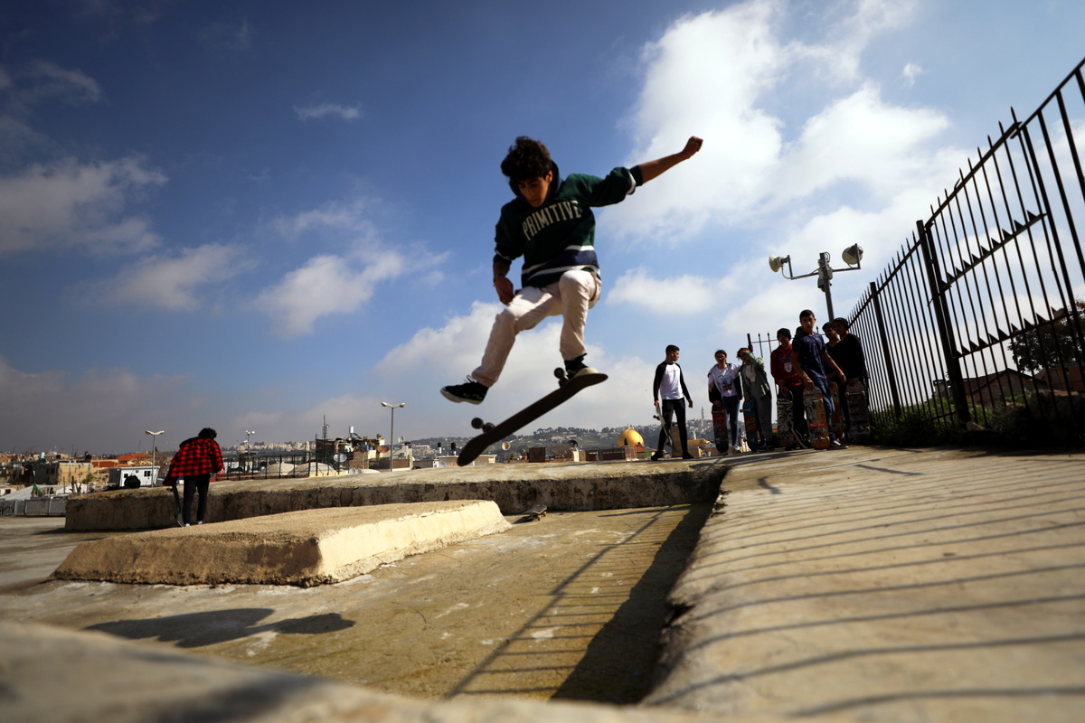 So sometimes the group - most boys but with some girls - cross over into West Jerusalem to practise in a purpose-built park used by Israeli skateboarders, with ramps and runs far smoother than they are accustomed to.