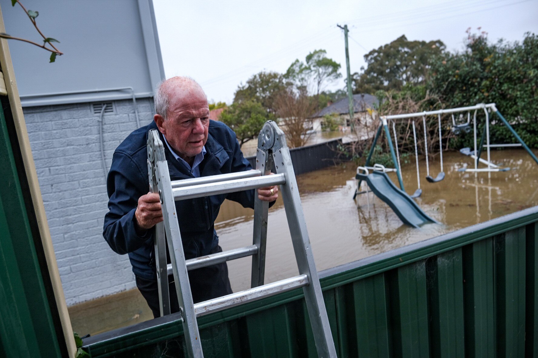 After finishing work, he waded through knee-high water and climbed a ladder pitched against his neighbour's fence to gain access to his two-storey Windsor home.