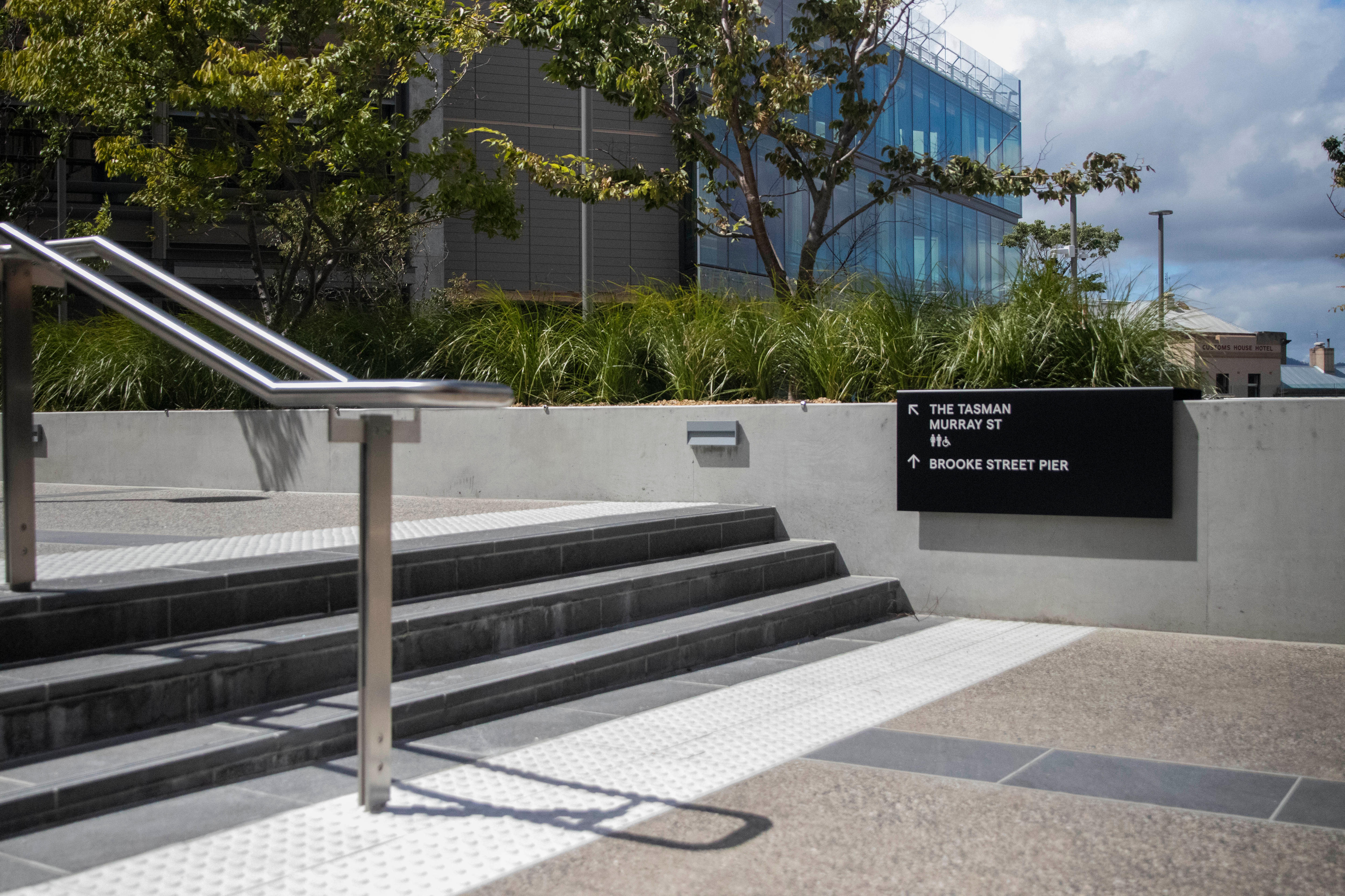 While there are two entrances with ramps, accessing them from the Hobart waterfront precinct requires a 35-metre uphill push for people using wheelchairs or prams.