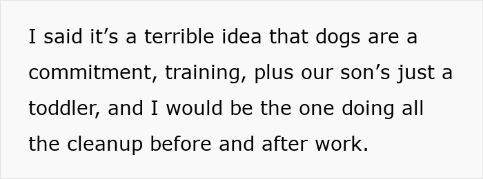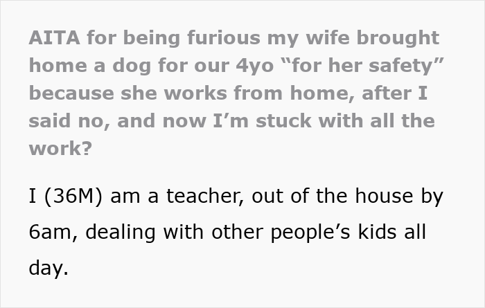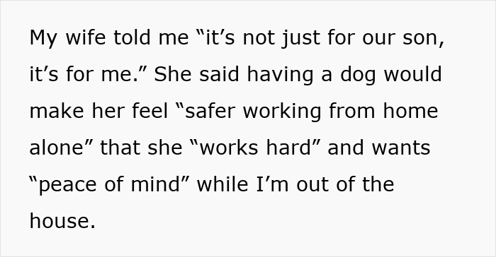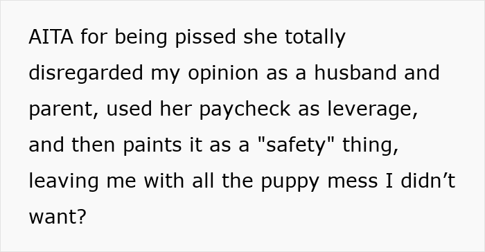 Since the woman had been earning more and working from home, she decided that it was time to get a dog, which would ensure the safety of her and her toddler when her husband wasn’t home. The problem is that she went ahead with this decision even though her partner wasn’t on board with the idea.