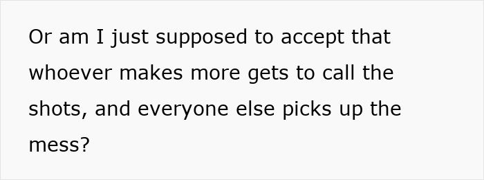 When the man confronted his wife about the situation, she put him down for being a teacher and said that since she earned more, she got to call the shots