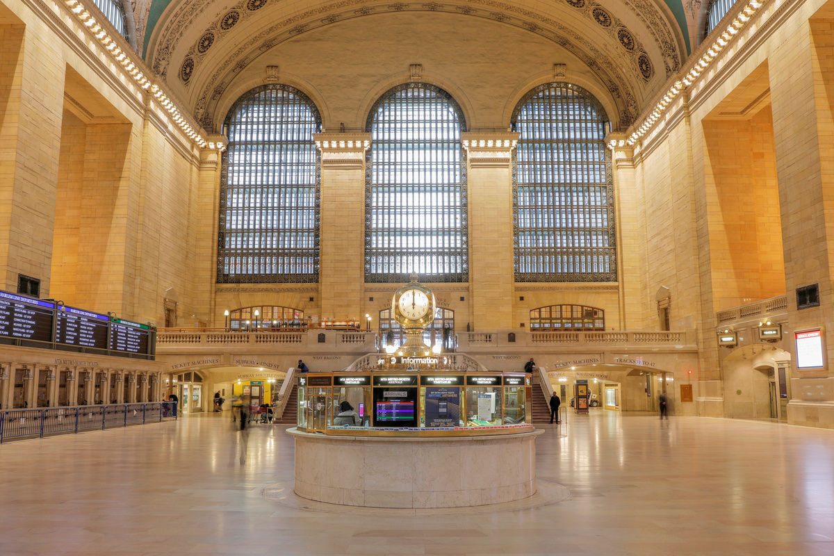 The clock strikes noon at the main concourse of the Grand Central Terminal, which is almost empty during coronavirus disease (COVID-19) outbreak, in Manhattan, New York City, U.S., March 31, 2020. REUTERS/Andrew Kelly