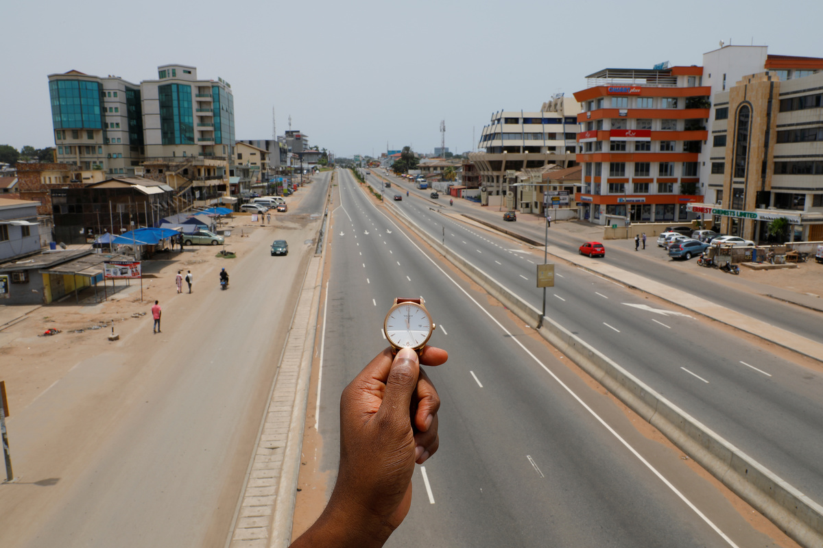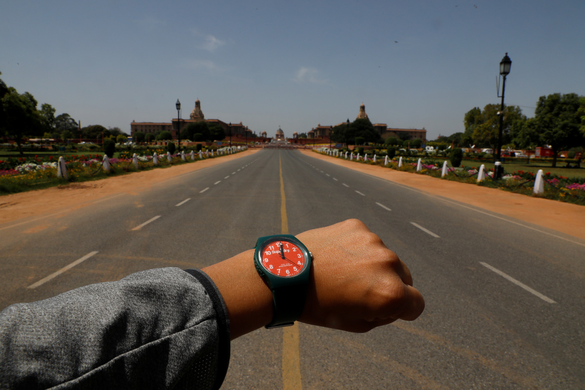 A watch showing the time at noon, is displayed for a photo in front of the Roman amphitheater, which is empty during the coronavirus disease (COVID-19) outbreak, in Amman, Jordan, March 31, 2020. REUTERS/Muhammad Hamed A watch showing the time at noon, is displayed for a photo in front of Tahrir Square during the coronavirus disease (COVID-19) outbreak, in Cairo, Egypt, March 31, 2020. REUTERS/Mohamed Abd El Ghany A watch showing the time at noon, is displayed for a photo in front of Bolivar avenue, which is almost empty, during coronavirus disease (COVID-19) outbreak, in Caracas, Venezuela, March 31, 2020. REUTERS/Manaure Quintero A mobile phone showing the time at noon, is displayed for a photo in front of the United States Capitol, which is completely empty, during the coronavirus disease (COVID-19) outbreak, in Washington, U.S., March 31, 2020. REUTERS/Jonathan Ernst A watch showing the time at noon, is displayed for a photo as people walk past Ring Road Central Street, which is almost empty during the coronavirus disease (COVID-19) outbreak, in Accra, Ghana, March 31, 2020. REUTERS/Francis Kokoroko SEARCH "COVID-19 NOON" FOR THIS STORY. SEARCH "WIDER IMAGE" FOR ALL STORIES.A watch showing the time at noon, is displayed for a photo in an almost empty area around Martyrs' Square during the coronavirus disease (COVID-19) outbreak, in Beirut, Lebanon March 31, 2020. REUTERS/Mohamed Azakir A man holds a pocket watch at noon, as he shows the time while posing for photo at an almost empty market near the Imam Ali shrine, during the coronavirus disease (COVID-19) outbreak, in Najaf, Iraq, March 31, 2020. REUTERS/Alaa al-Marjani A clock showing the time at noon, is pictured on a building, next to almost empty streets at Old Town Square during the coronavirus disease (COVID-19) outbreak, in Prague, Czech Republic, March 31, 2020. REUTERS/David W Cerny A clock showing the time at noon, is pictured next to closed shops at Stock im Eisen square, during the coronavirus disease (COVID-19) outbreak, in Vienna, Austria, March 31, 2020. REUTERS/Leonhard Foeger The clock on Spasskaya tower showing the time at noon, is pictured next to Moscow’s Kremlin, and St. Basil’s Cathedral as they stand on an empty square, during the coronavirus disease (COVID-19) outbreak, in Moscow, Russia, March 31, 2020. REUTERS/Maxim Shemetov A clock showing the time at noon is seen near almost empty streets at Maidan Nezalezhnosti (Independence Square), during the coronavirus disease (COVID-19) outbreak, in Kiev, Ukraine, March 31, 2020. REUTERS/Gleb GaranichA watch showing the time at noon, is displayed for a photo in front of Damascus Gate, as it is in front of an empty staircase, during the coronavirus disease (COVID-19) outbreak, at Jerusalem's Old City, March 31, 2020. REUTERS/Ammar Awad A clock showing the time at noon, is pictured by The State Hermitage museum, in front of Palace square which is almost empty during the coronavirus disease (COVID-19) outbreak, in Saint Petersburg, Russia, March 31, 2020. REUTERS/Anton Vaganov A clock showing the time at noon, is displayed for a photo as Wat Phra Si Rattana Satsadaram (The Temple of the Emerald Buddha, also known as The Grand Palace), is closed for visitors due to the coronavirus disease (COVID-19) outbreak, stands next to an empty road in Bangkok, Thailand, March 31, 2020. REUTERS/Jorge Silva A watch showing the time at noon, is displayed for a photo in front of a beach during the coronavirus disease (COVID-19) outbreak, in the northern Gaza Strip, Palestinian Territories, March 31, 2020. REUTERS/Mohammed Salem A clock on a building showing the time at noon on an almost empty square in Minsk, Belarus, March 31, 2020. REUTERS/Vasily Fedosenko A watch showing the time at noon, is displayed for a photo in front of Merlion Park, which is almost empty, during the coronavirus disease (COVID-19) outbreak, in Singapore, March 31, 2020. REUTERS/Edgar Su An almost empty intersection with low traffic is seen at noon on Jalan M.H. Thamrin, one of the main roads in Jakarta, during the coronavirus disease (COVID-19) outbreak, in Jakarta, Indonesia, March 31, 2020. REUTERS/Willy Kurniawan SA photographer wearing a watch at noon shows the time while taking a photo of almost empty roads outside the Chhatrapati Shivaji Maharaj Terminus, during the coronavirus disease (COVID-19) outbreak, in Mumbai, India, March 31, 2020. REUTERS/Francis Mascarenhas A man wearing a protective face mask, takes a photo with his mobile phone at noon, at Shibuya Crossing, during the coronavirus disease (COVID-19) outbreak, in Tokyo, Japan, March 31, 2020. REUTERS/Issei Kato The seafront Malecon is pictured next to an almost empty road at noon, during the coronavirus disease (COVID-19) outbreak, in Havana, Cuba, March 31, 2020. REUTERS/Alexandre Meneghini A clock showing the time at noon, is displayed for a photo at Emionu district during the coronavirus disease (COVID-19) outbreak, in Istanbul,Turkey, March 31, 2020. REUTERS/Umit Bektas A watch showing the time at noon, is displayed for a photo in front of National Congress during the coronavirus disease (COVID-19) outbreak, in Brasilia, Brazil, March 31, 2020. REUTERS/Ueslei Marcelino A clock shows the time at noon, as a man walks near Cape Town's city hall, during the coronavirus disease (COVID-19) outbreak, in Cape Town, South Africa, March 31, 2020. REUTERS/Mike Hutchings A watch showing the time at noon, is displayed for a photo in front of an empty road at Rajpath, during the coronavirus disease (COVID-19) outbreak, in New Delhi, India, March 31, 2020. REUTERS/Anushree Fadnavis A watch showing the time at noon, is displayed for a photo in front of an empty road at Rajpath, during the coronavirus disease (COVID-19) outbreak, in New Delhi, India, March 31, 2020. REUTERS/Anushree Fadnavis The White House is seen from 16th St NW in the middle of the day as the spread of coronavirus disease (COVID-19) continues, in Washington, U.S., March 31, 2020. REU