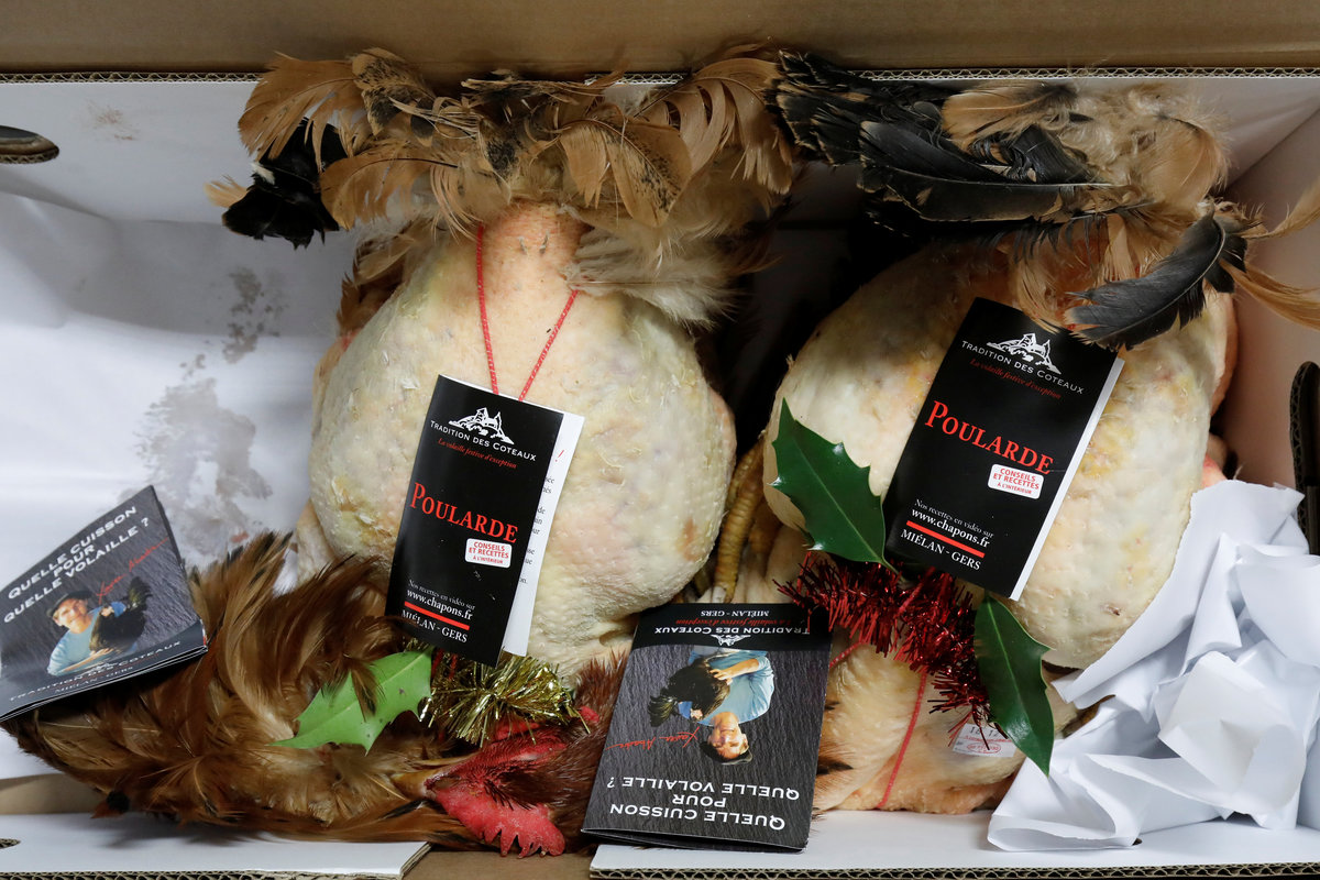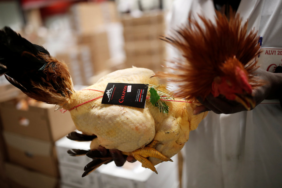 Fattened capons are pictured at the poultry pavilion in the Rungis International wholesale food market as buyers prepare for the Christmas holiday season in Rungis, south of Paris, France, November 30, 2017. Picture taken November 30, 2017. REUTERS/Benoit Tessier