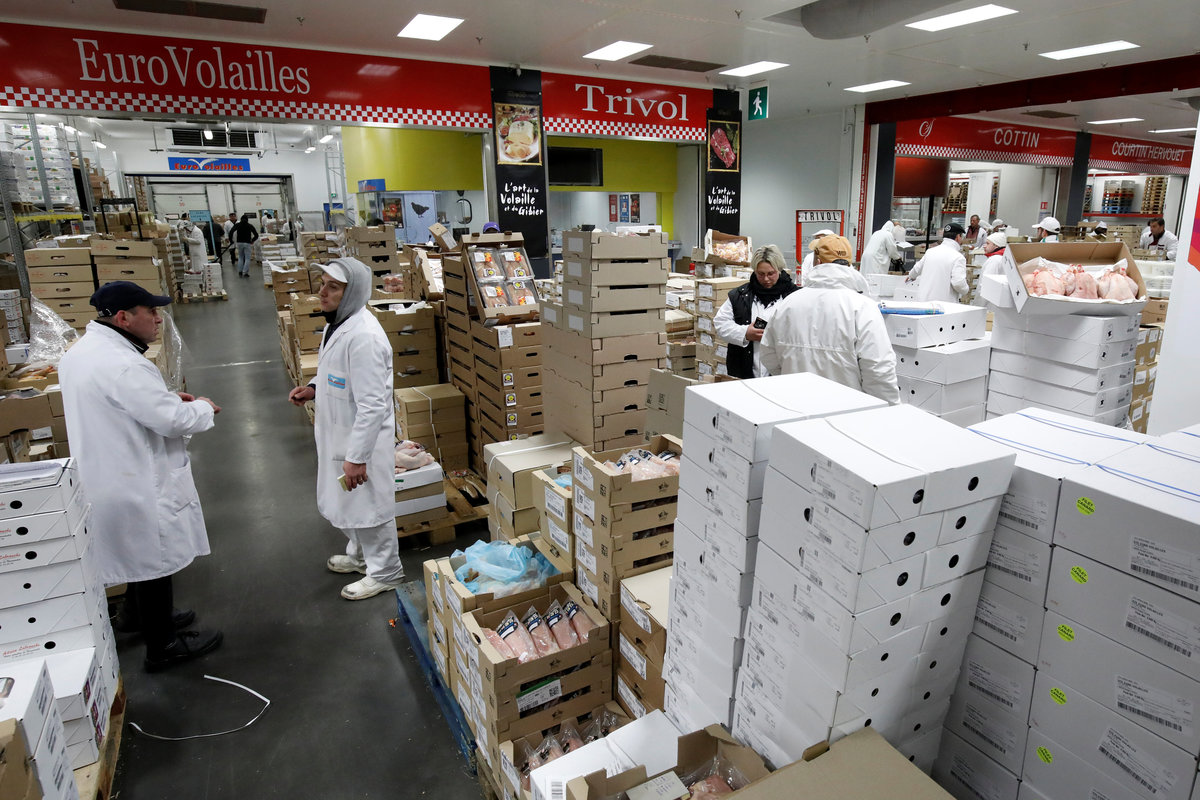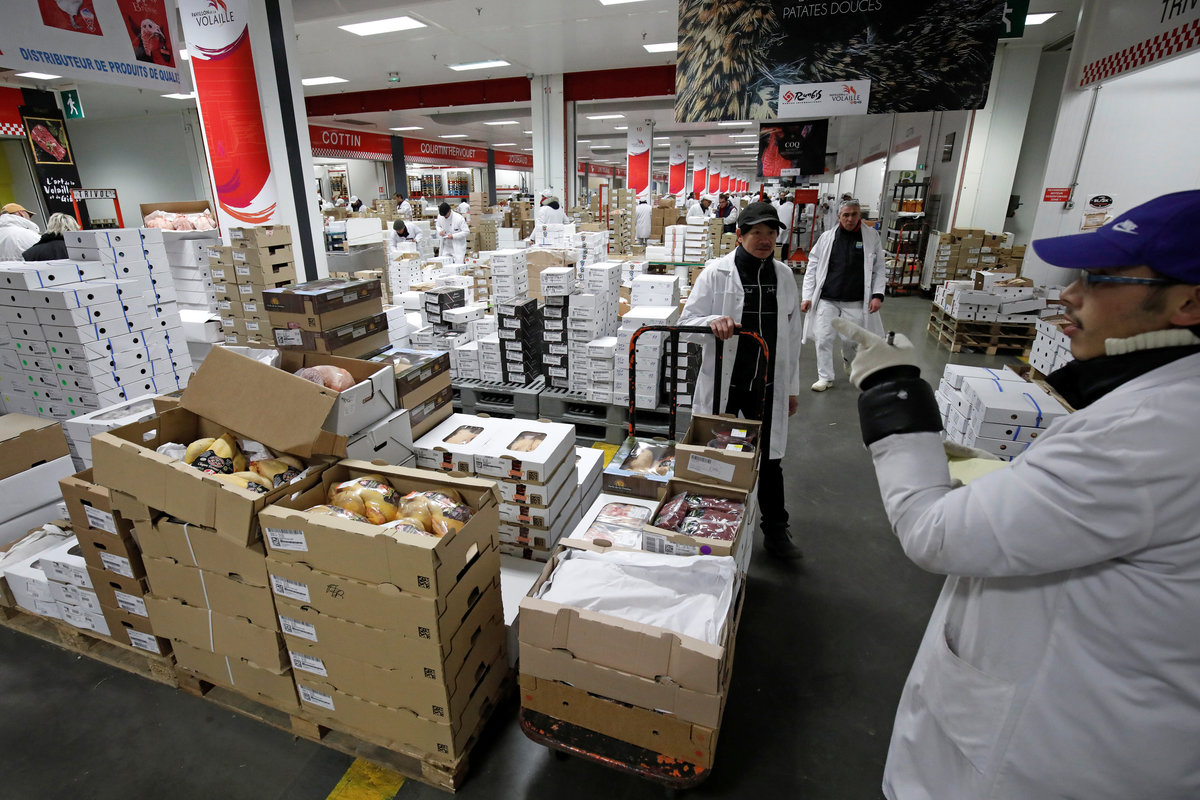Duck livers, named Foie Gras, are pictured at the poultry pavilion in the Rungis International wholesale food market as buyers prepare for the Christmas holiday season in Rungis, south of Paris, France, November 30, 2017. Picture taken November 30, 2017. REUTERS/Benoit TessierVendors gather in the poultry pavilion in the Rungis International wholesale food market as buyers prepare for the Christmas holiday season in Rungis, south of Paris, France, November 30, 2017. Picture taken November 30, 2017. REUTERS/Benoit TessierAn outside view of the fish pavilion in the Rungis International wholesale food market as buyers prepare for the Christmas holiday season in Rungis, south of Paris, France, December 6, 2017. Picture taken December 6, 2017. REUTERS/Benoit TessierVendors gather in the poultry pavilion in the Rungis International wholesale food market as buyers prepare for the Christmas holiday season in Rungis, south of Paris, France, November 30, 2017. Picture taken November 30, 2017. REUTERS/Benoit TessierRedcurrants are pictured at the fruits and vegetables pavilion in the Rungis International wholesale food market as buyers prepare for the Christmas holiday season in Rungis, south of Paris, France, November 30, 2017. Picture taken November 30, 2017. REUTERS/Benoit TessierGillardeau oysters are displayed at the fish pavilion in the Rungis International wholesale food market as buyers prepare for the Christmas holiday season in Rungis, south of Paris, France, December 6, 2017. Picture taken December 6, 2017. REUTERS/Benoit TessierClementines are displayed at the fruits and vegetables pavilion in the Rungis International wholesale food market as buyers prepare for the Christmas holiday season in Rungis, south of Paris, France, November 30, 2017. Picture taken November 30, 2017. REUTERS/Benoit TessierMeat hangs from hooks in the meat pavillion at the Rungis International wholesale food market as buyers prepare for the Christmas holiday season in Rungis, south of Paris, France, November 30, 2017. Picture taken November 30, 2017. REUTERS/Benoit TessierA vendor weighs winter black truffles (Tuber Melanosporum) at the Rungis International wholesale food market as buyers prepare for the Christmas holiday season in Rungis, south of Paris, France, November 30, 2017. Picture taken November 30, 2017. REUTERS/Benoit TessierBlue lobsters are displayed at the fish pavilion in the Rungis International wholesale food market as buyers prepare for the Christmas holiday season in Rungis, south of Paris, France, December 6, 2017. Picture taken December 6, 2017. REUTERS/Benoit TessierSea urchins are displayed at the fish pavilion in the Rungis International wholesale food market as buyers prepare for the Christmas holiday season in Rungis, south of Paris, France, December 6, 2017. Picture taken December 6, 2017. REUTERS/Benoit TessierA man pushes a trolley in the poultry pavilion in the Rungis International wholesale food market as buyers prepare for the Christmas holiday season in Rungis, south of Paris, France, December 6, 2017. Picture taken December 6, 2017. REUTERS/Benoit TessierA worker holds a capon in the poultry pavilion in the Rungis International wholesale food market as buyers prepare for the Christmas holiday season in Rungis, south of Paris, France, December 6, 2017. Picture taken December 6, 2017. REUTERS/Benoit TessierRaspberries are pictured at the fruits and vegetables pavilion in the Rungis International wholesale food market as buyers prepare for the Christmas holiday season in Rungis, south of Paris, France, November 30, 2017. Picture taken November 30, 2017. REUTERS/Benoit TessierScallops are displayed at the fish pavilion in the Rungis International wholesale food market as buyers prepare for the Christmas holiday season in Rungis, south of Paris, France, December 6, 2017. Picture taken December 6, 2017. REUTERS/Benoit Tessier