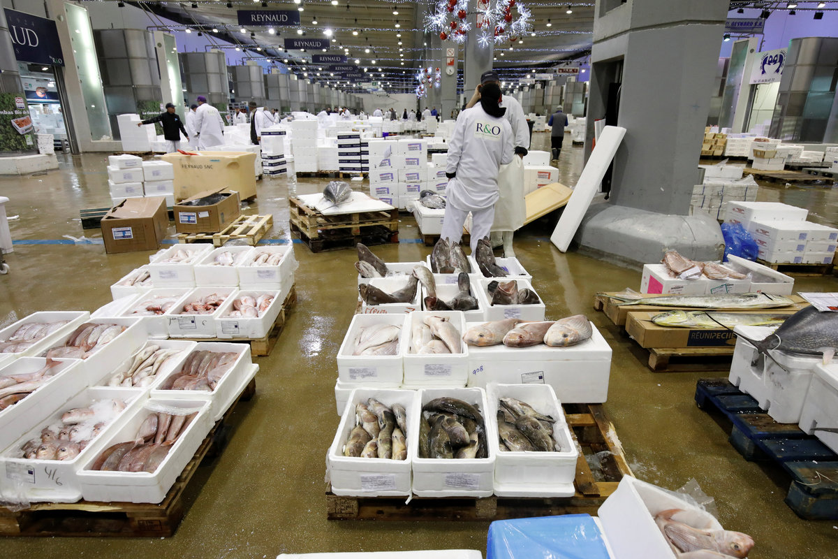 Vendors gather at the fish pavilion in the Rungis International wholesale food market as buyers prepare for the Christmas holiday season in Rungis, south of Paris, France, November 30, 2017. Picture taken November 30, 2017. REUTERS/Benoit Tessier