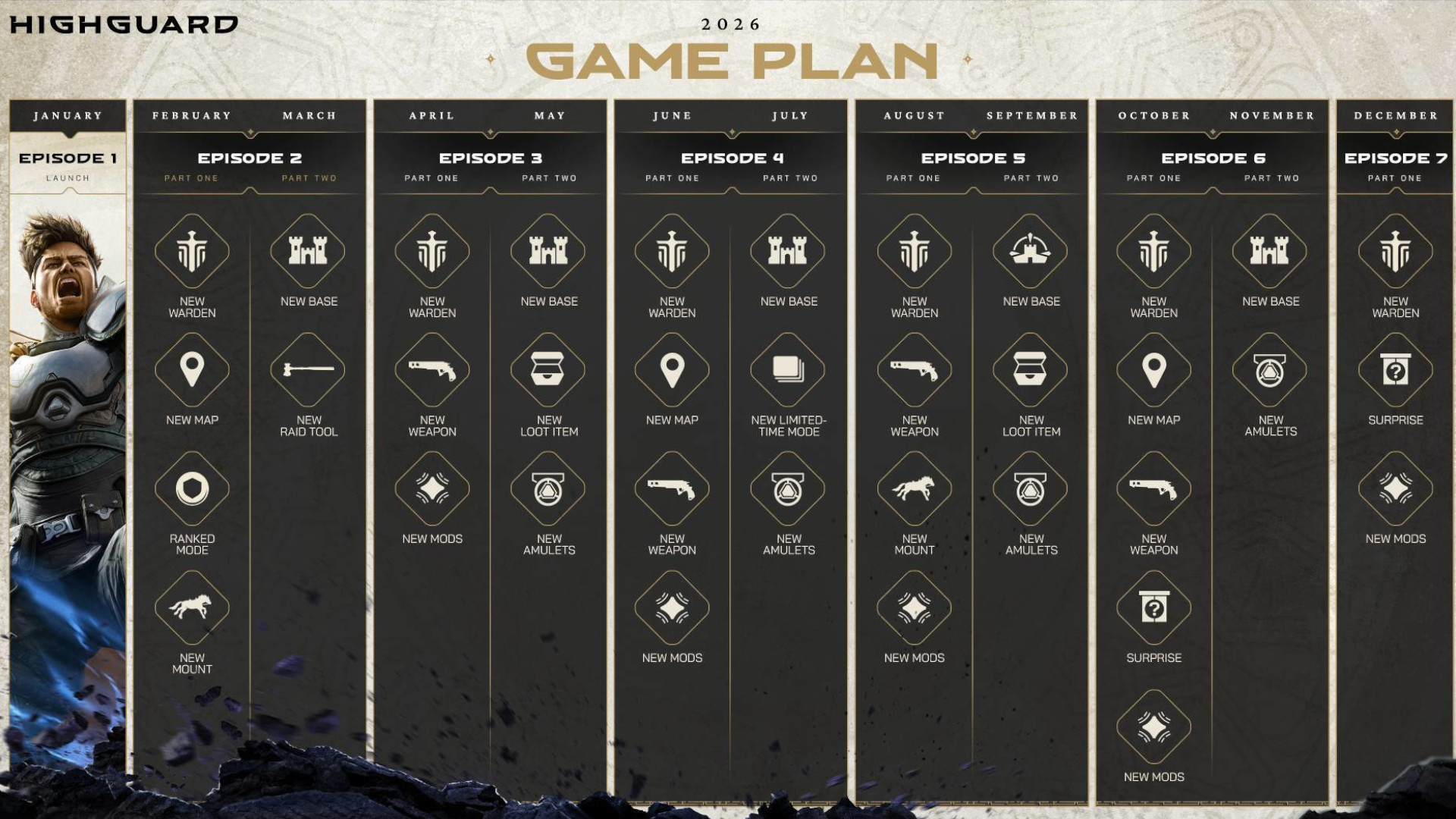 Despite its recent release, there is already a Highguard roadmap and multiple updates planned for the title. In fact, 2026 is planned to see seven different updates drop, with each bringing in a new Warden at least. Each planned update is titled as different episodes and broken into two parts, meaning that you'll get something new every month of the year.