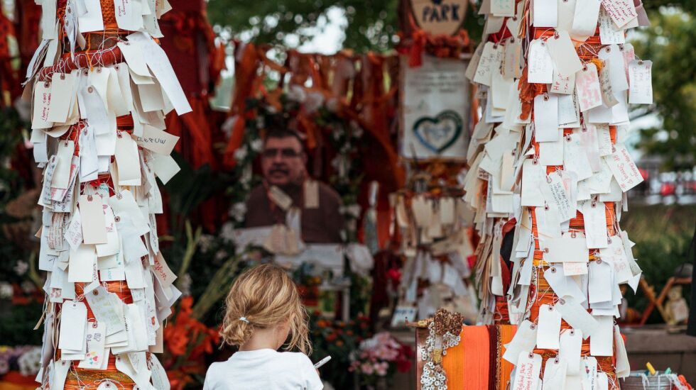 But then he heard about a memorial that sprang up near the site of the shooting. Under an arched passageway, people came to tie orange yarn and fabric around pillars, leave thousands of notes, and talk with others still reeling. It was a place to connect and remember.