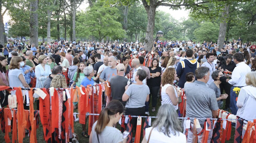 About 1100 people showed up at Sunset Woods Park for a memorial service Thursday night and to look toward the future in the wake of the Highland Park parade shooting.