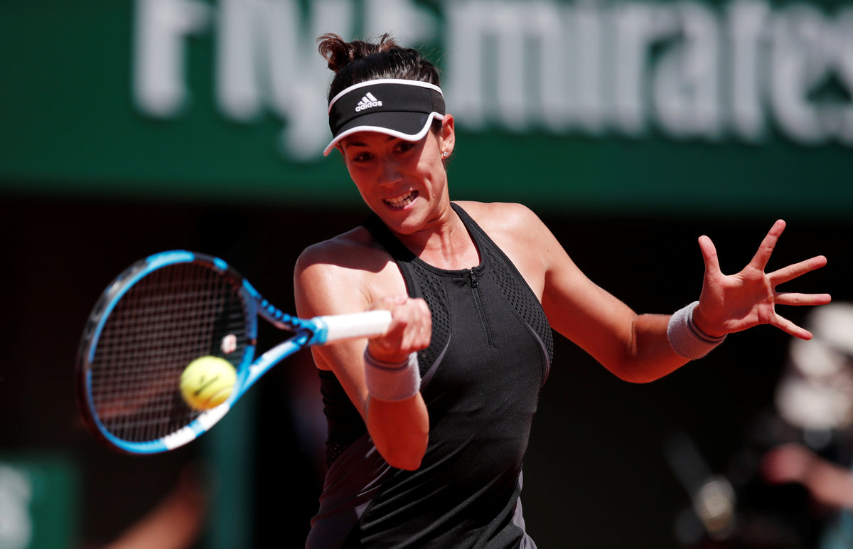 World number one Simona Halep broke Spaniard Garbine Muguruza's serve four times to win the opening set 6-1 in the first women's semi-final on Court Philippe-Chatrier.