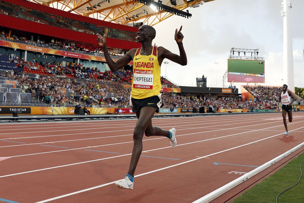 A late flourish helped Ugandan sprinter Joshua Kiprui Cheptegei clinch gold in the men's 5000m final ahead of Canadian Mohammed Ahmed.