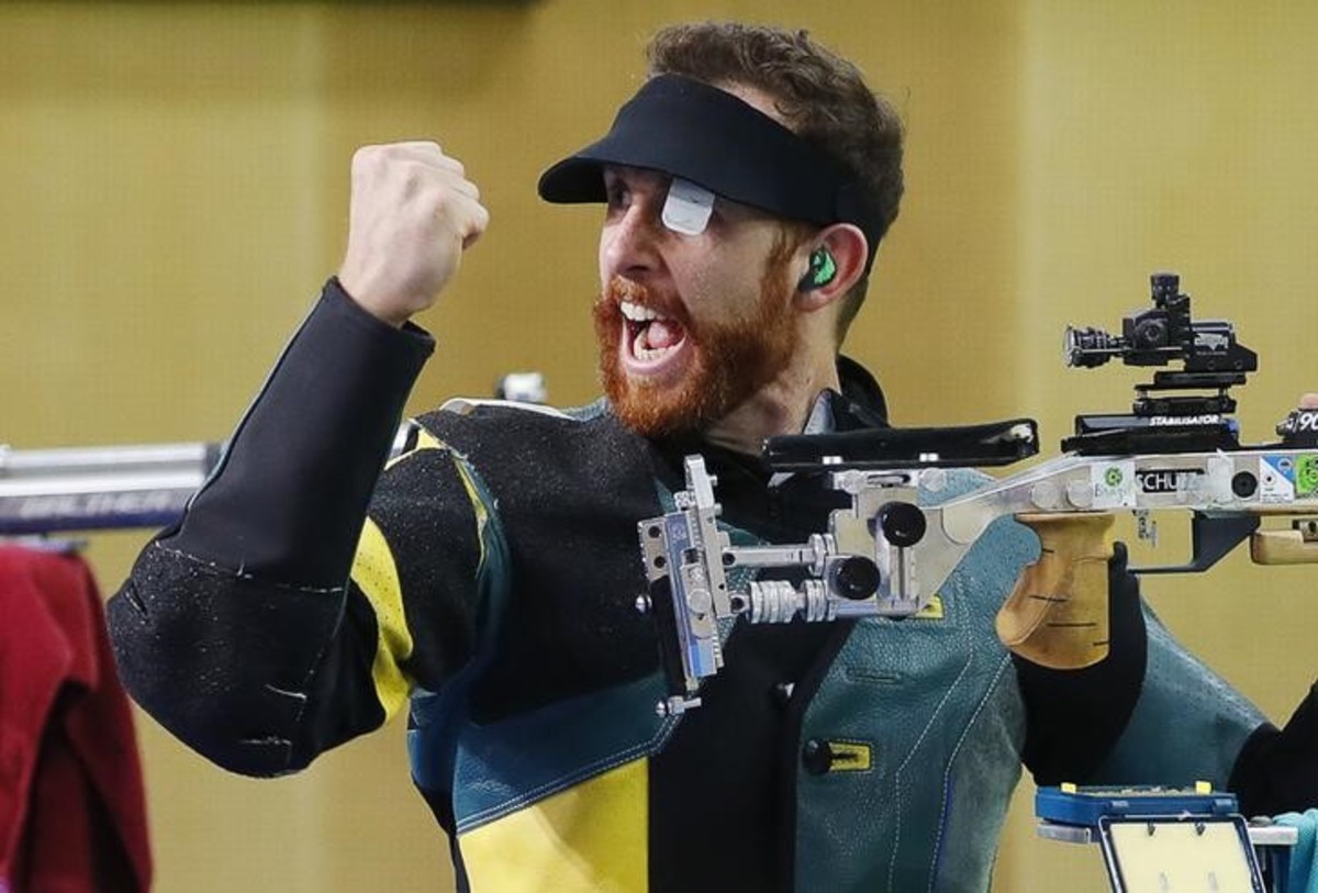 Australian Dane Sampson won the gold in the men's 10m air rifle final after setting a new Games record score of 245.0.