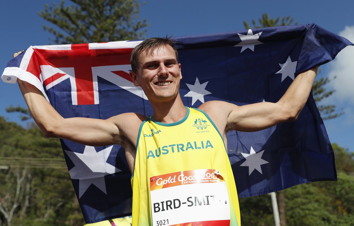 Australia's Dane Bird-Smith produced a stunning burst in the final few hundred metres to win the first athletics medal at the Gold Coast Games in the men's 20km walk.