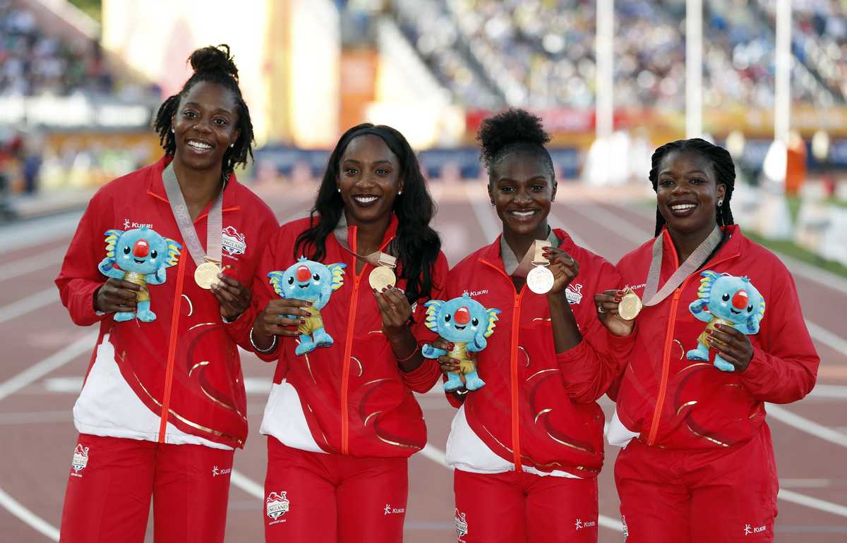 Jamaica's women defended their Commonwealth Games 4x400m relay gold as the team of Christine Day, Anastasia Le-Roy, Janieve Russell and Stephenie McPherson finished with a time of three minutes and 24 seconds. Nigeria were second with Botswana claiming bronze.