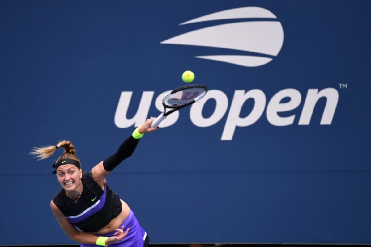 Aug 27, 2019; Flushing, NY, USA; Petra Kvitova of Czech Republic serves to Denisa Allertova of Czech Republic on day two of the 2019 U.S. Open tennis tournament at USTA Billie Jean King National Tennis Center. Mandatory Credit: Danielle Parhizkaran-USA TODAY Sports