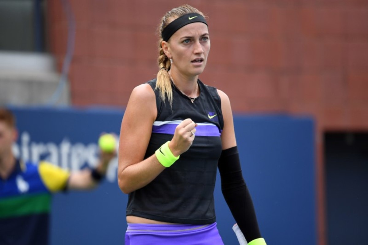 Aug 27, 2019; Flushing, NY, USA; Petra Kvitova of Czech Republic celebrates winning the first set over Denisa Allertova of Czech Republic on day two of the 2019 U.S. Open tennis tournament at USTA Billie Jean King National Tennis Center. Mandatory Credit: Danielle Parhizkaran-USA TODAY Sports