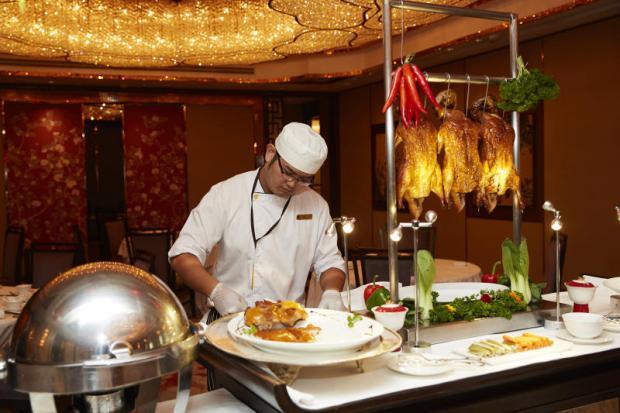 The selection of barbecued meat and poultry is offered from the live-carving station. There you'll find char siew (honey-glazed barbecue pork loin) flame-broiled to perfection and showcasing succulent meat that's neither too fatty nor dry nor overly sweet.