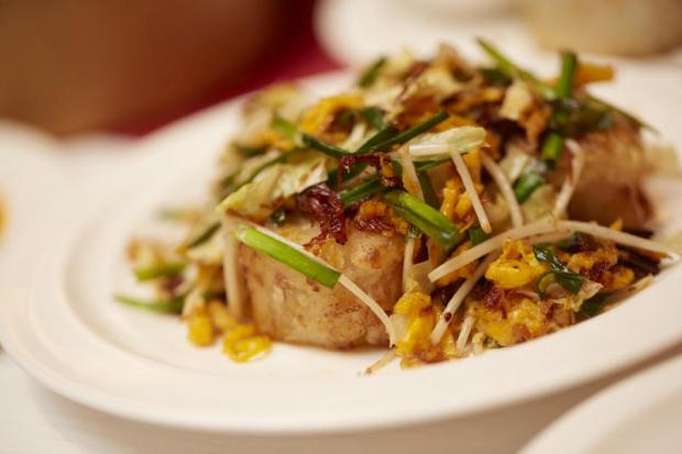 The deep-fried delicacies, especially the prawn roll with crispy golden tofu skin; hum sui gok (glutinous rice dumplings with chicken stuffing); and the very popular deep-fried mashed taro puff with seafood stuffing, tasted superlative.