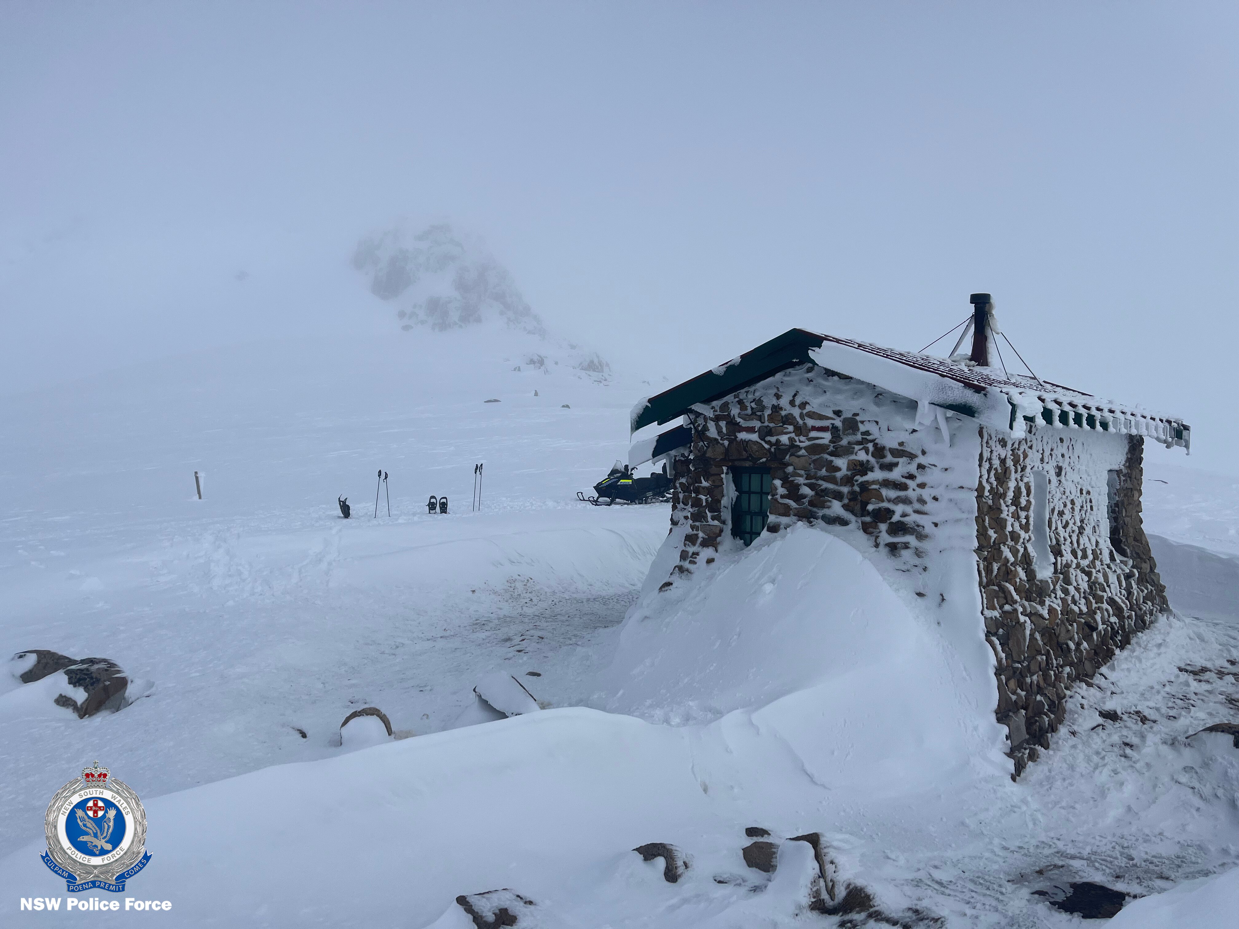 An initial search using over-snow vehicles travelled towards the hut on Monday but was suspended in the afternoon due to the conditions.