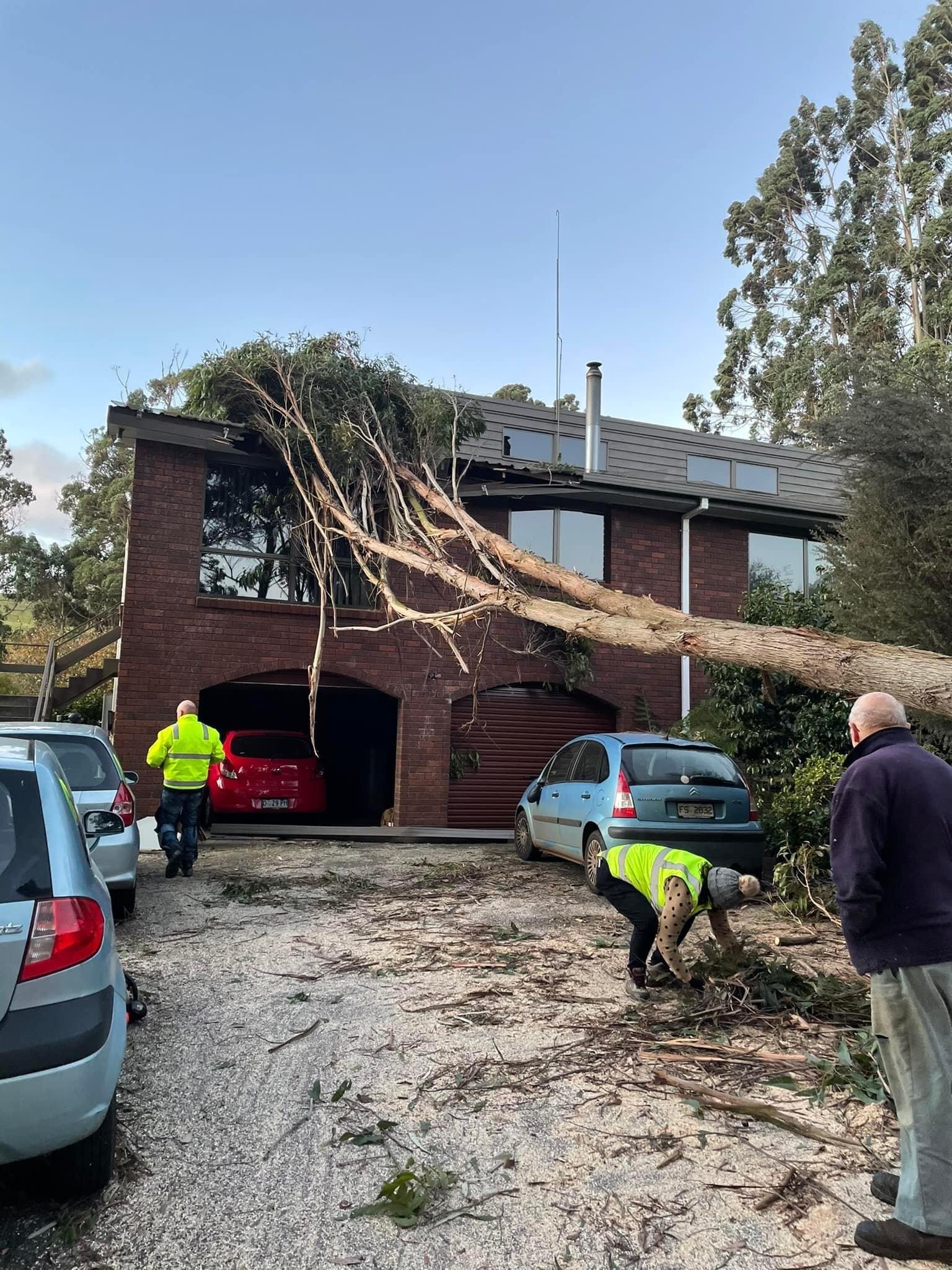 In Beulah, a 54-year-old woman died after she was crushed by a falling tree, with a man taken to the Launceston General Hospital with serious injuries.