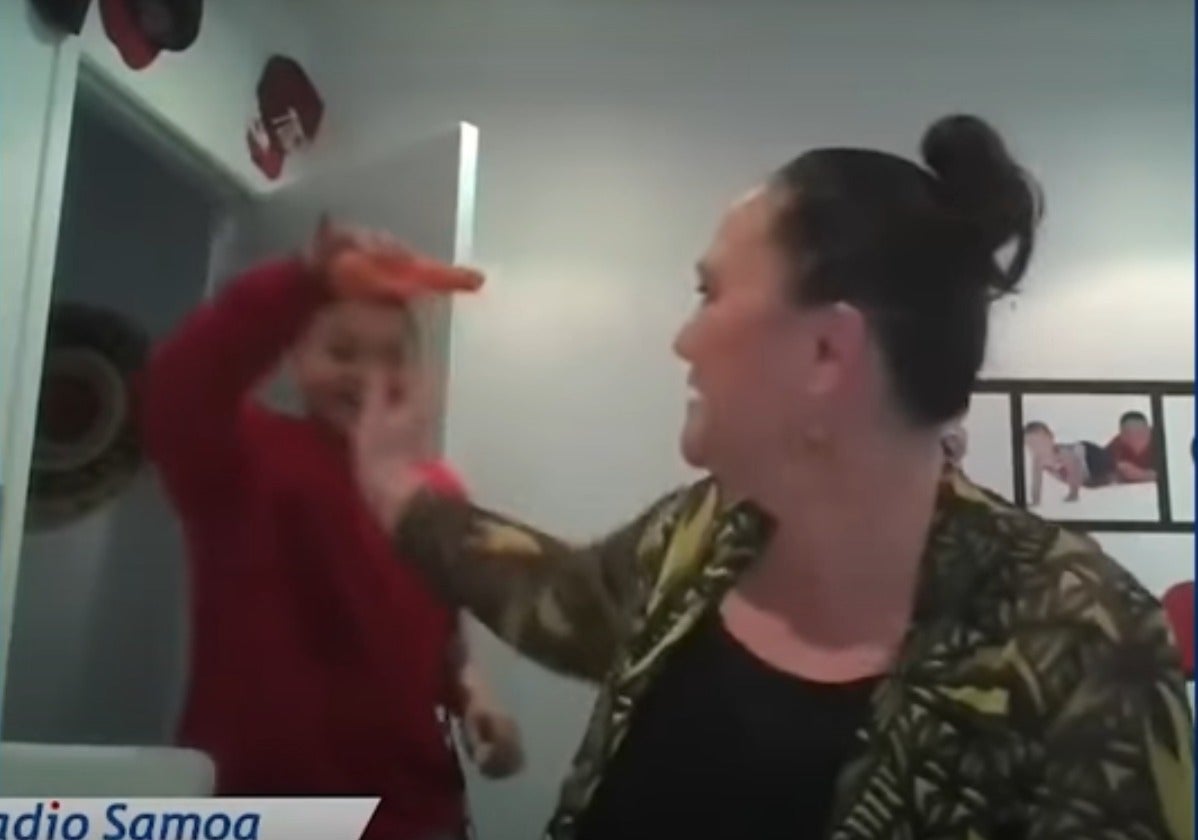 And now Carmel Sepuloni, the minister for social development in New Zealand, has fallen victim to the new occupational hazards of the home/workplace hybrid while doing a live Zoom interview with Radio Samoa.