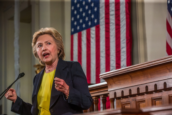 Speaking from the rostrum of the former state Capitol's chambers, a setting akin to one in which a president would deliver the State of the Union, Clinton seemed to acknowledge Americans' lack of faith in her ability to bridge the nation's divide.