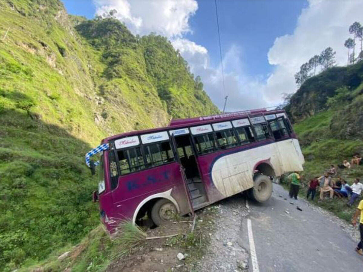 According to the information, had the bus not stopped in time then it could have fallen into around 300 meter deep gorge. The private bus was going from Paonta Sahib towards Shillai on the Paonta Sahib-Gatadhar route around 4 pm on Friday. As soon as the bus reached near Bohrad, about 10 km from Kafota, the steering rod of the bus was broke, due to which the bus got off the road.