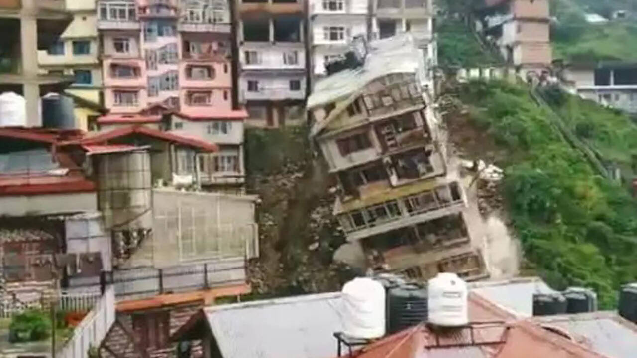 SHIMLA: An eight-storey building collapsed at Goda Chowki (Kachi Ghati) area of Himachal Pradesh's Shimla district on Thursday evening. Luckily no loss of life or injuries was reported as the administration had vacated the building and its surrounding areas in advance.