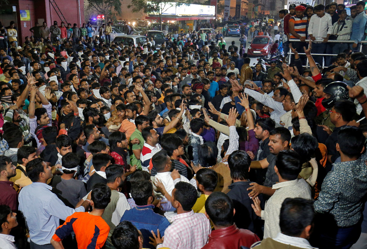 Television broadcast images of gangs of young men, their faces concealed by swathes of cloth, throwing stones in the streets of Gurgaon, 30 km (19 miles) from New Delhi, while the hollowed-out shell of a bus smoldered nearby.